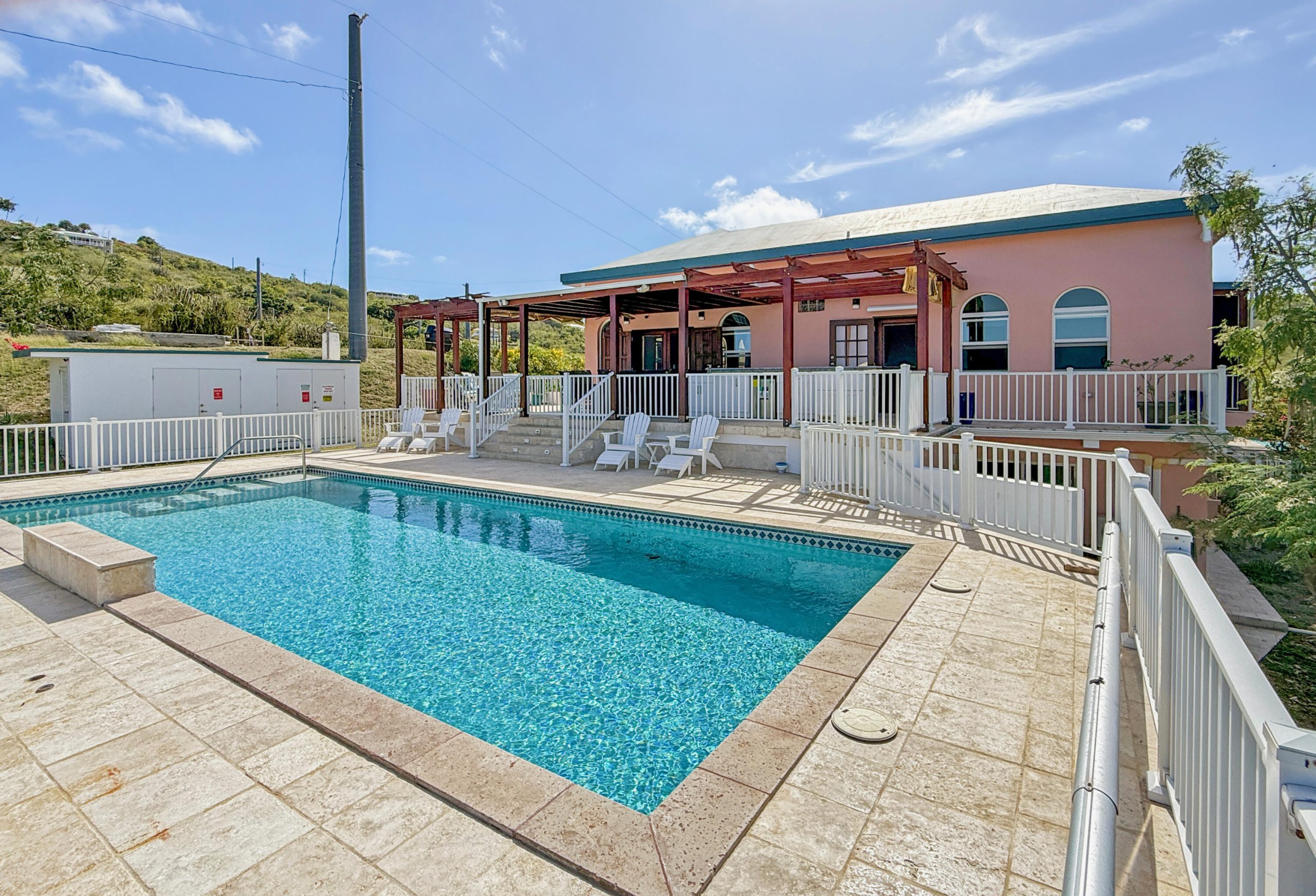 Everything Irie! Wonderful, spacious & rare 3 bedroom, 2.5 bath penthouse condo with fabulous views of the pool, beach, surrounding hillsides, & the blue Caribbean Sea from two large galleries! Located in the desirable gated community of Pelican Cove, it’s the only condo on the third floor, so it’s very private. Details include beautifully remodeled kitchen with stainless steel appliances & granite countertops, 5 new AC compressors, newly painted, colorful sea inspired mosaic tile floor in half bath, updated showers, lovely bedroom furniture, vaulted ceiling, small fridge in dining room, lounging space with sofa bed, & two locking owners’ closets. It’s just a short stroll down the beach to the restaurant at The Palms for a meal or drink. This has been a successful vacation rental.